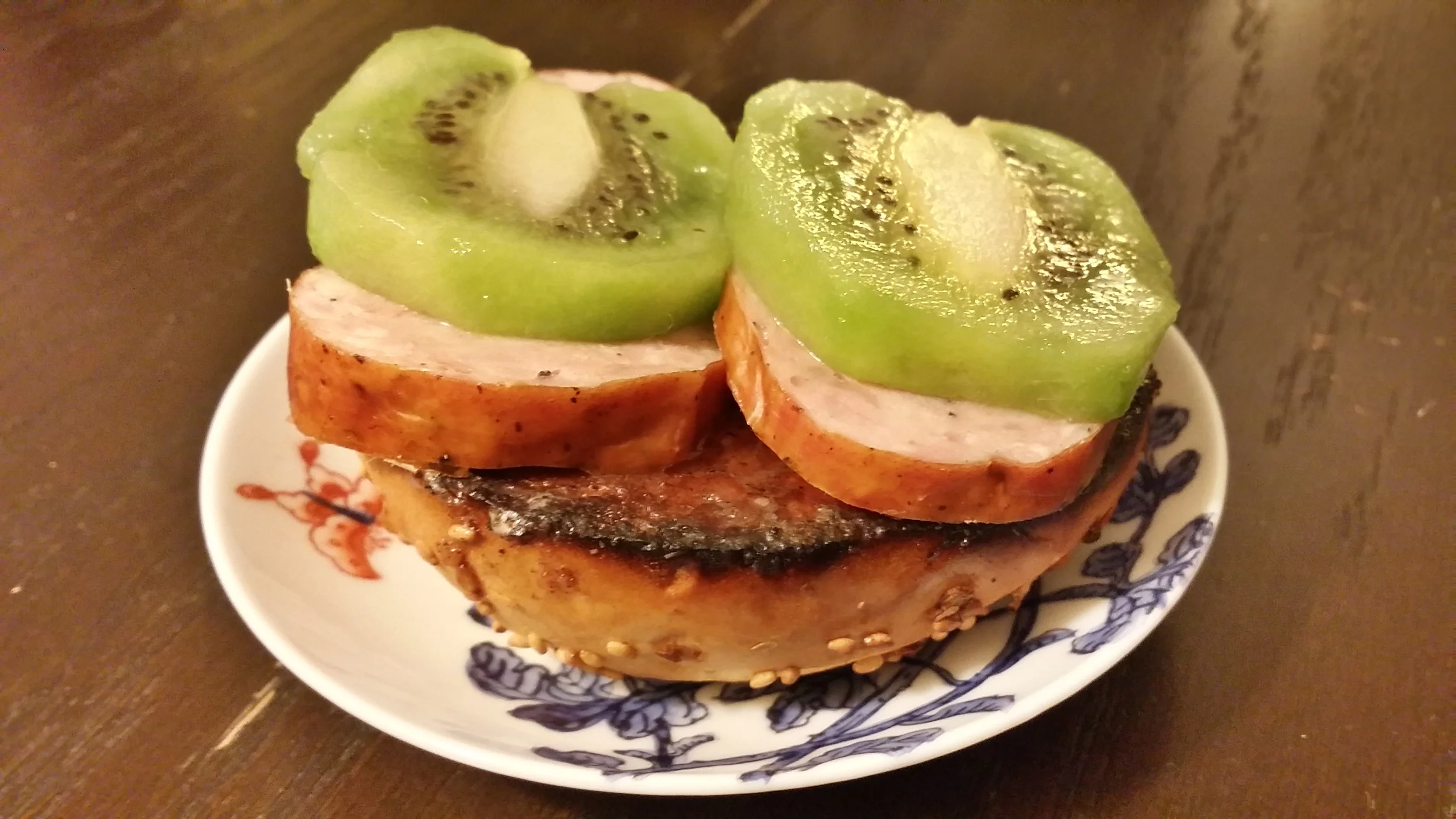 Top with slices of Kielbasa Sausage and Kiwi fruit